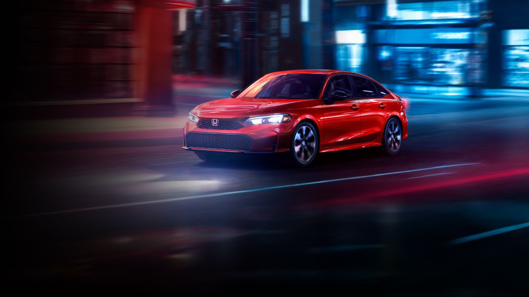 2025 Civic Sedan Sport Touring Hybrid shown in Rallye Red.
